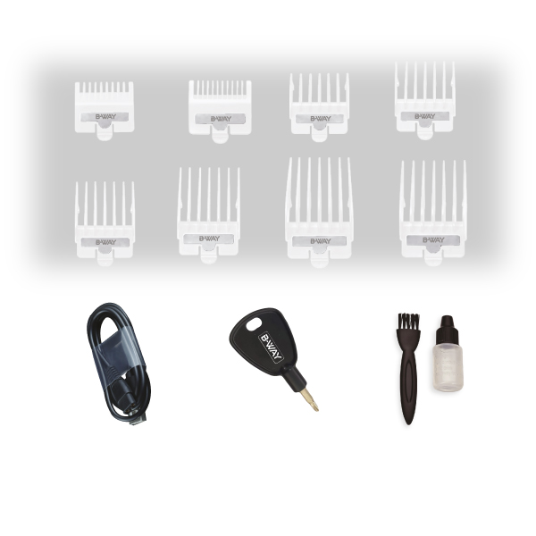 - Set completo de 12 piezas: Incluye 8 peines guía optimizados (de 1.5 mm a 19 mm), aceite lubricante, cepillo de limpieza, cable USB y un destornillador.
