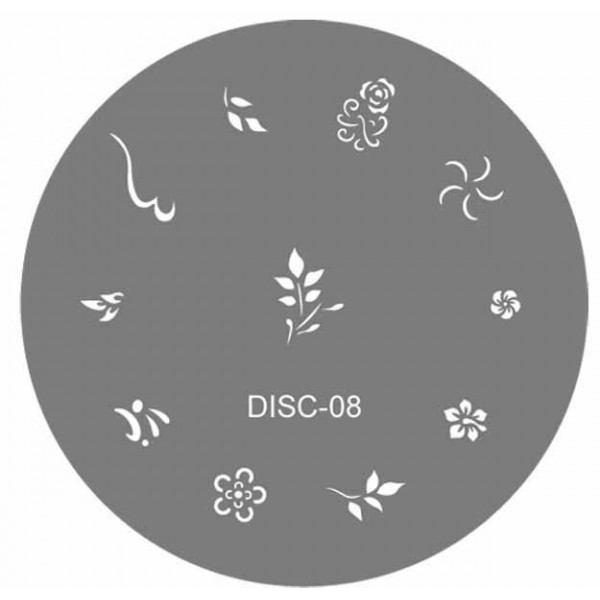 La Placa Sellos Tatoo es un disco de acero inoxidable que permite crear muy rápidamente dibujos en las uñas. Tiene un diseño de pequeñas hojas y flores. Fácil para principiantes y profesionales de uñas, para usar en casa o en el salón de belleza.